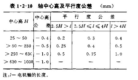 3.防爆電機軸中心高及平行度公差對應(yīng)表