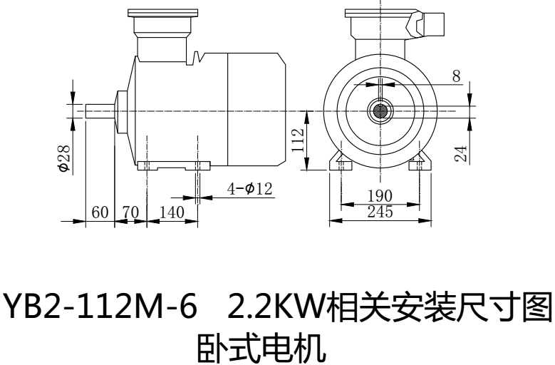 上星期和大家簡(jiǎn)單講了一下YB2系列的100L-4-2.2KW隔爆型的防爆電機(jī)的相關(guān)安裝尺寸圖。今天和大家說一下YB2系列2.2KW的隔爆型防爆電機(jī)不是只有4極電機(jī)才有,同樣6極電機(jī)也有2.2KW的防爆電機(jī),今天就來和大家看一下YB2系列隔爆型防爆電機(jī)112M-6-2.2KW的安裝尺寸圖。