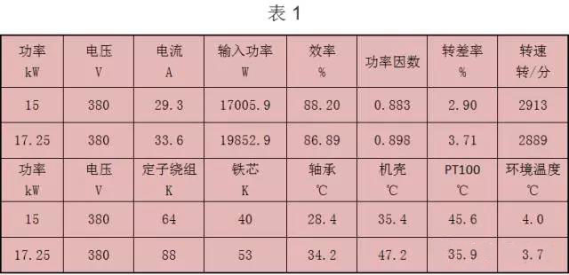 從表中數(shù)據(jù)可以看出,定子繞組溫升、軸承溫度、機(jī)殼溫度都有明顯的升高。有的電機(jī)廠家做型式試驗(yàn)時只按照標(biāo)準(zhǔn)電機(jī)進(jìn)行試驗(yàn),不能準(zhǔn)確判斷電機(jī)在其他服務(wù)系數(shù)狀況下的性能指標(biāo)。