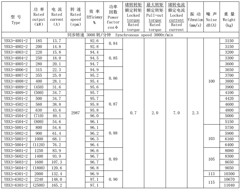 型譜中帶有括號(hào)的規(guī)格電機(jī)溫升按F級(jí)(105K)考核,其余規(guī)格可按B級(jí)(80K),如要求括號(hào)中功率規(guī)格的溫升按B級(jí)(80K)考核,型號(hào)應(yīng)當(dāng)向下順延一檔。