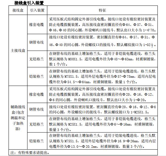 □主接線盒進(jìn)線口形式:橡套、鋼布。