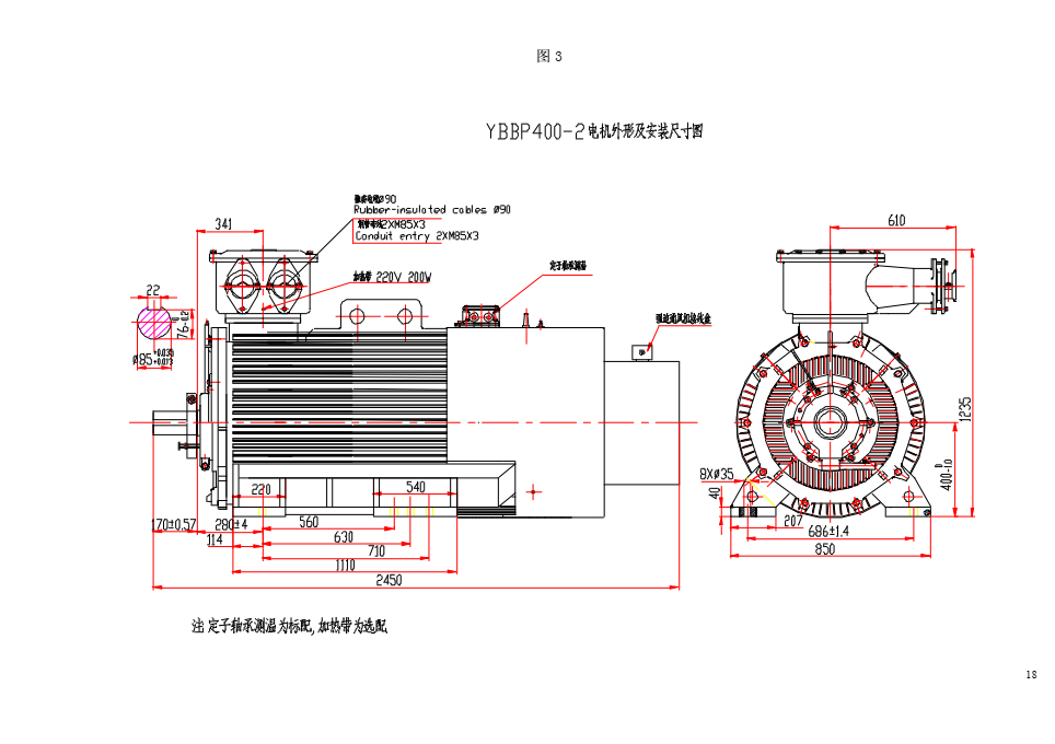型式、隔爆等級;另外接線盒進線方式、進線方向、旋轉(zhuǎn)方向、定子測溫、軸承測溫、帶排水等可根據(jù)要求進行生產(chǎn)。