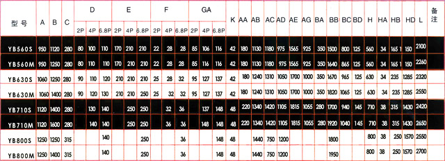 YB560-800高壓防爆系列安裝及外形尺寸